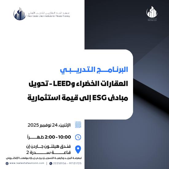 برنامج تدريبي تحت عنوان “العقارات الخضراء وLEED – تحويل مبادئ ESG إلى قيمة استثمارية”